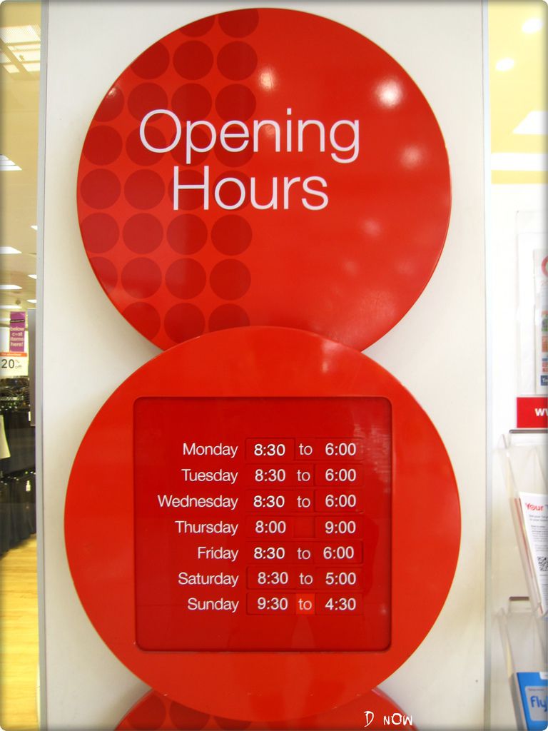澳洲的購物商場通常都很早就結束營業,最有人性的,我看過七點打烊,好注意一下各大超市營業時間,尤其是周末,打烊時間會更加提前,尤其對於糧食已經趨近補貨甚或沒有的時候,要注意唷,以免晚餐沒有著落。(澳洲人真的是很不愛工作ㄟ。)
