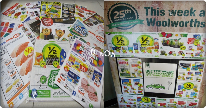 www.coles.com.au 是兩大常見的大型連鎖生鮮超市,DM商品每周更新一次,由於澳洲超市特價的價格真的都非常的阿莎力,實在是便宜到受不了,所以節儉的作者我平常都只買DM上的特價品,除非是自有品牌的商品(因為自有品牌的商品已經很便宜,通常都不會再特價了);此外,可以在網站www.flybuys.com.au申請免費的會員卡「flybuys」,是集點卡的一種,一元一點,可以在官網上換贈品話折價卷,同張卡片亦可以在相關合作的商店使用,如k mart、Target、coles express加油站等。